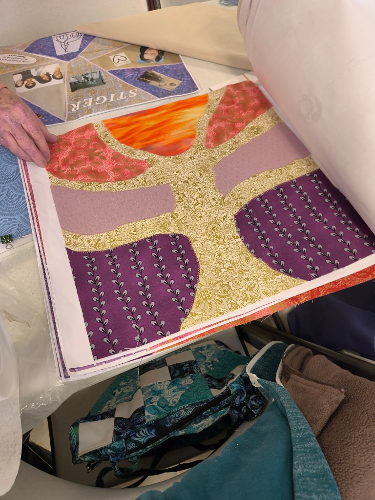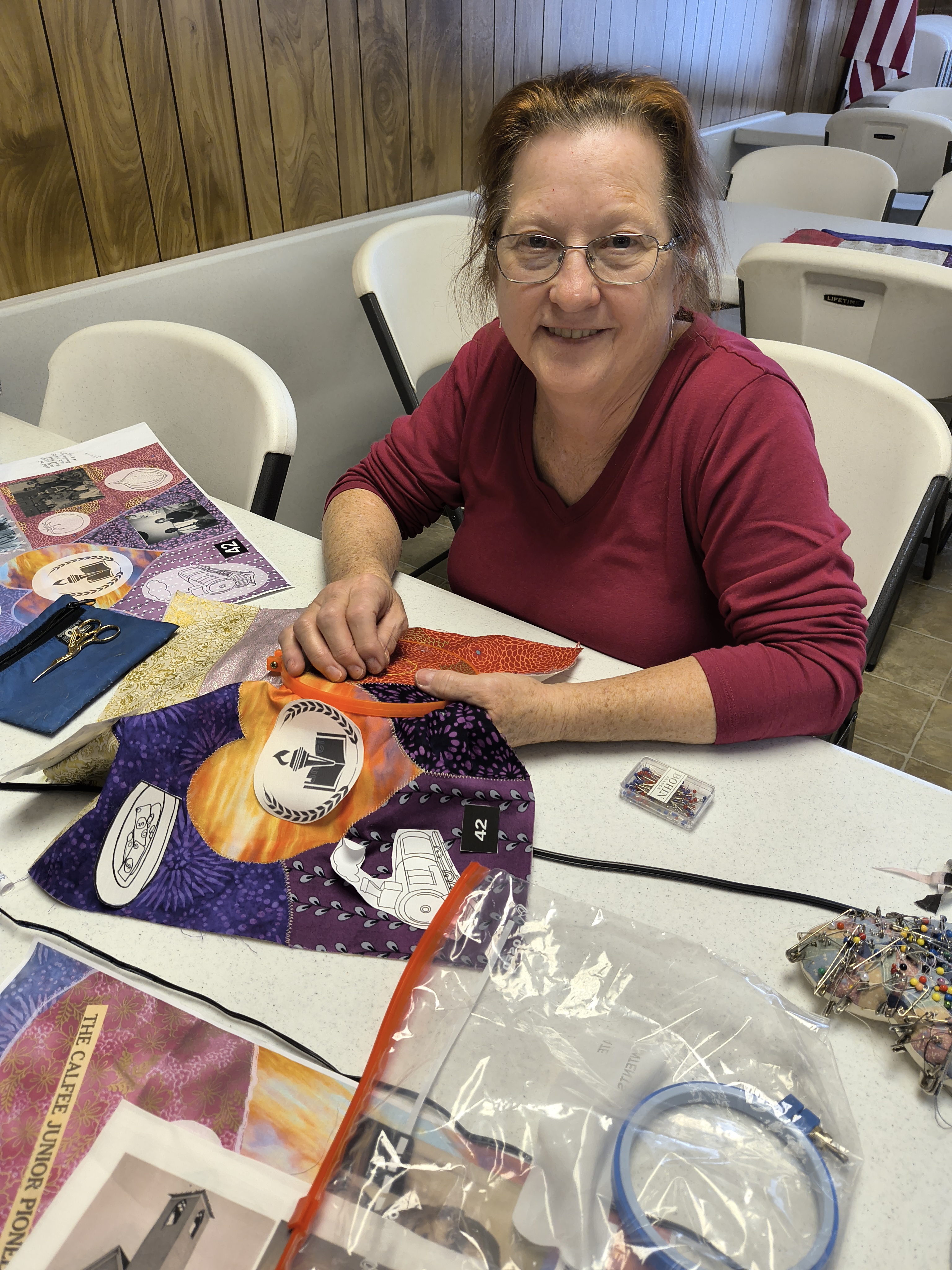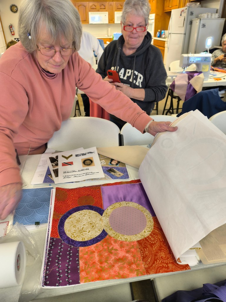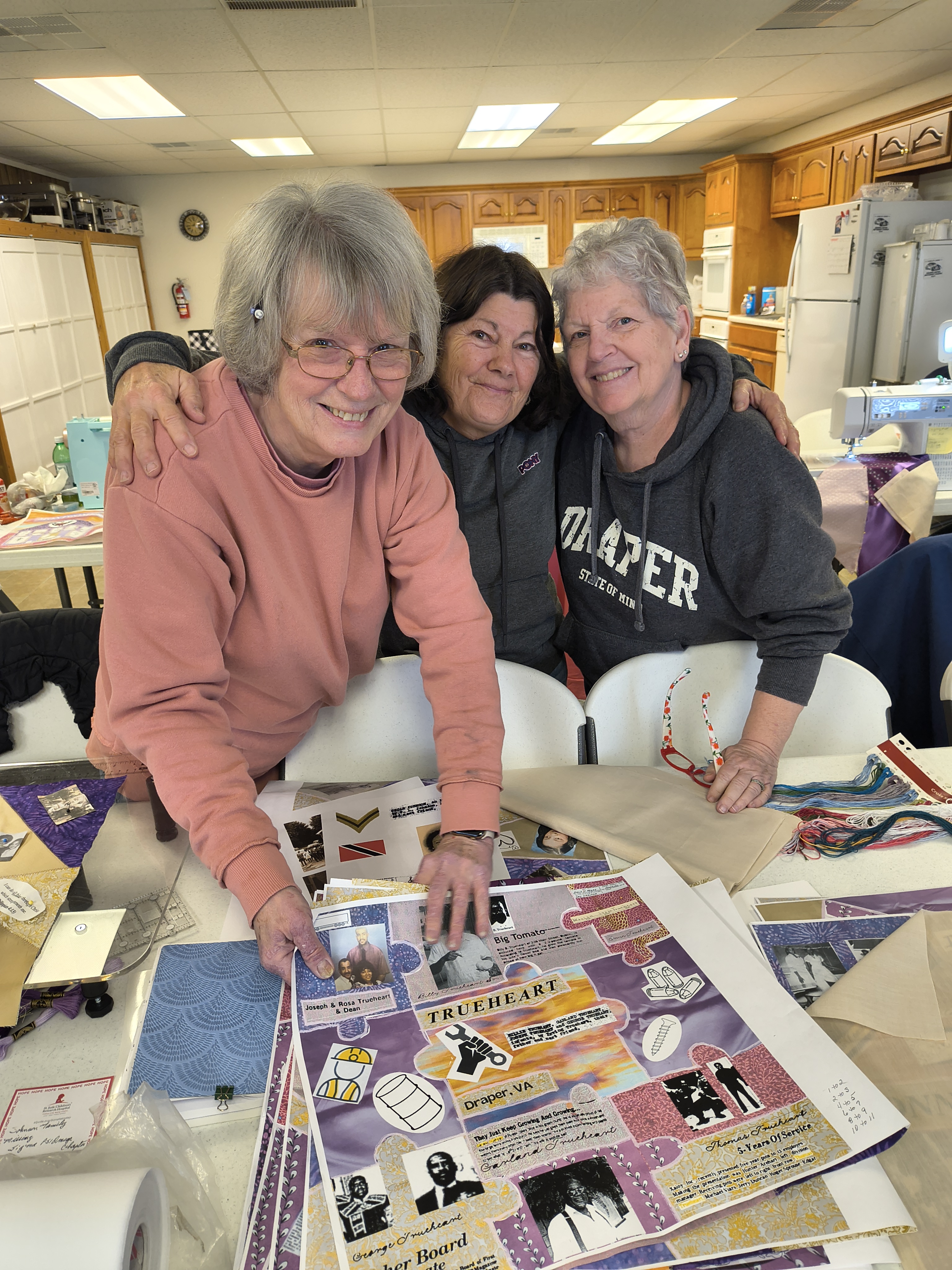 Hosted by the Draper Arts & Quilting Collective, experienced and interested quilters met to continue to work on the quilt design. Each participant has been assigned a family collage design to assemble into a quilt block. By April, the individual blocks will be joined to create a crazy quilt that will travel regionally.