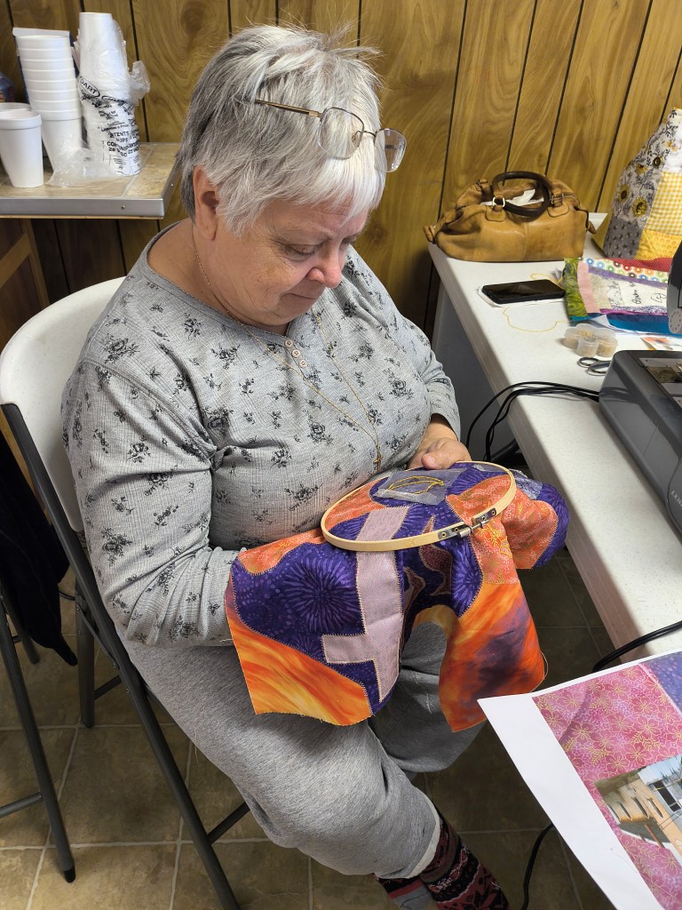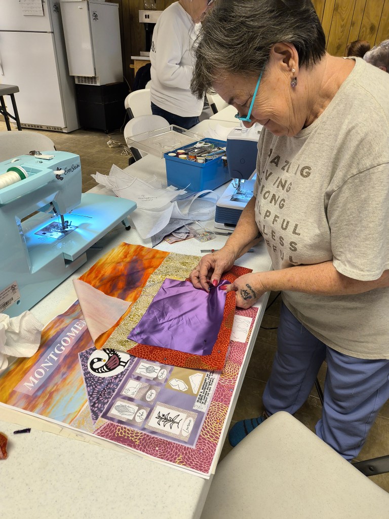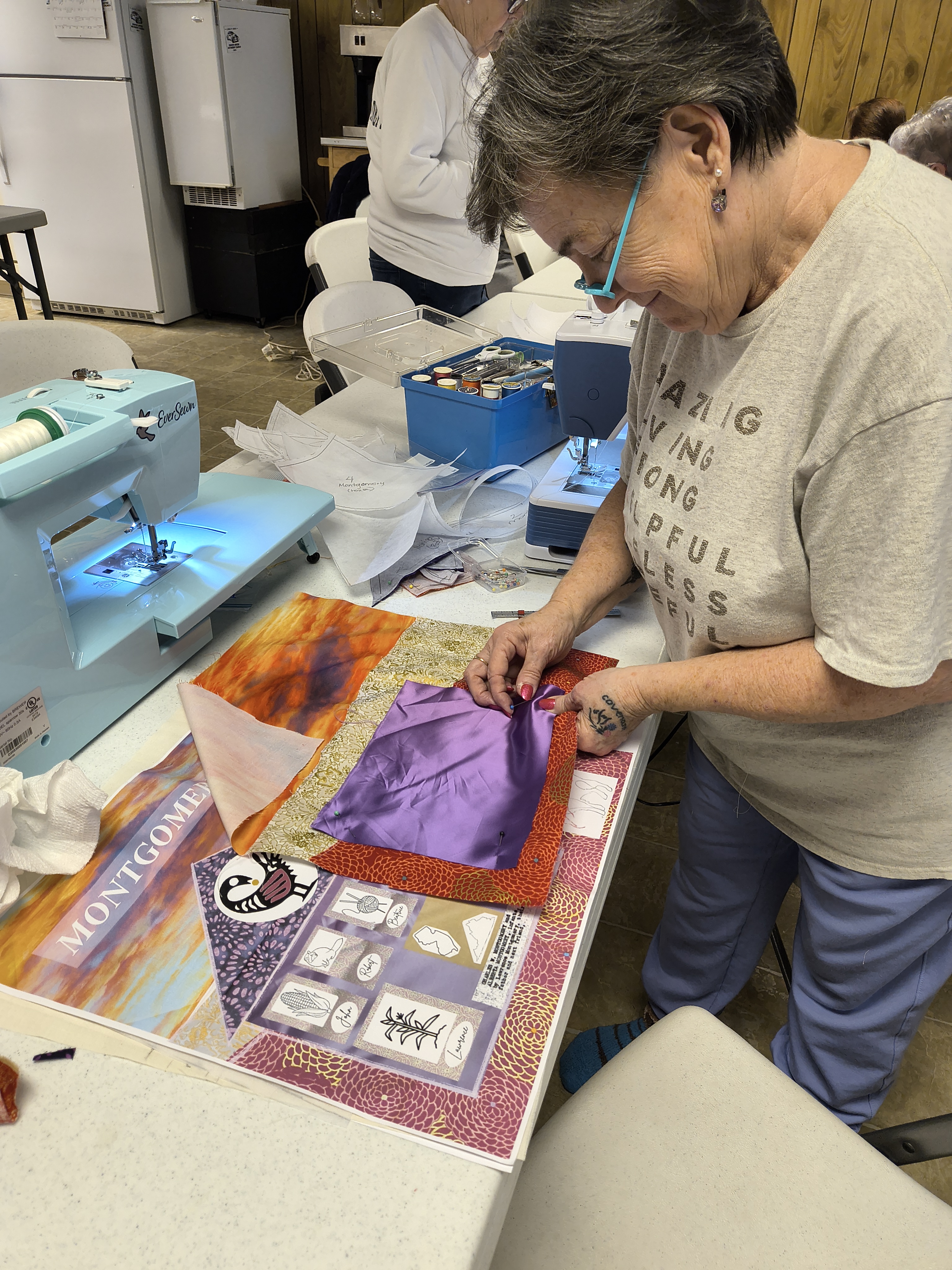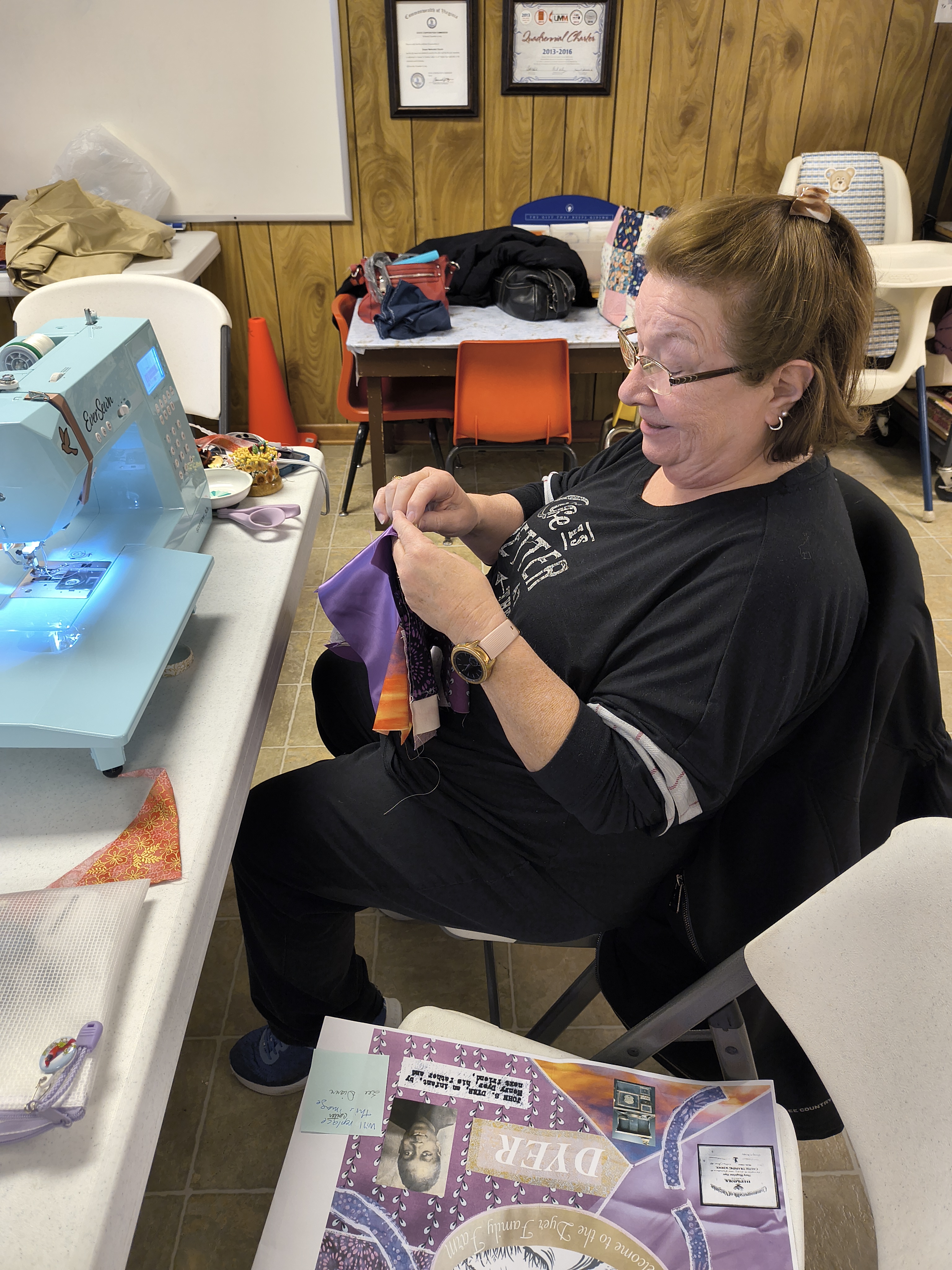 Hosted by the Draper Arts & Quilting Collective, experienced and interested quilters met to continue to work on the quilt design. Each participant has been assigned a family collage design to assemble into a quilt block. By April, the individual blocks will be joined to create a crazy quilt that will travel regionally.