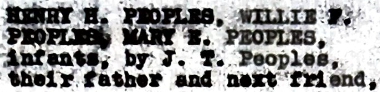 The case file section that was included on the Peoples quilt square design reads “Henry H. Peoples, Willie F. Peoples, Mary E. Peoples infants by J.T. Peoples, their father and next friend,”