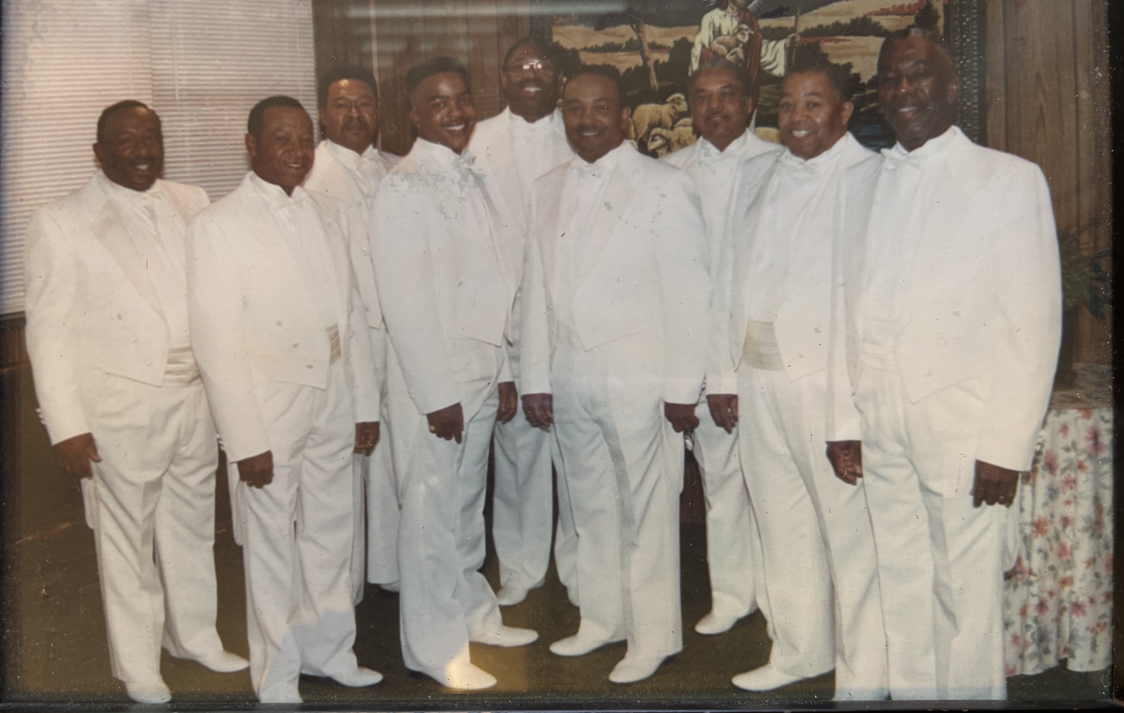 The Travelin’ Ten was an old-fashioned gospel group. The men wore tuxedos with bow ties. This attire is not unlike the hallmark of barbershop quartet groups. The style of singing and harmonizing associated with contemporary barbershop music originates from African-American culture in the late 19th century and early 20th century.10 In the 1930s, Black barber shops fostered community and were spaces for quartet singing. This tradition later influenced gospel music church quartets, which carried forward the style and spirit of barbershop singing.11 The Travelin’ Ten emulated this singing style, holding onto a nostalgic feel with an emphasis on gospel tunes.12